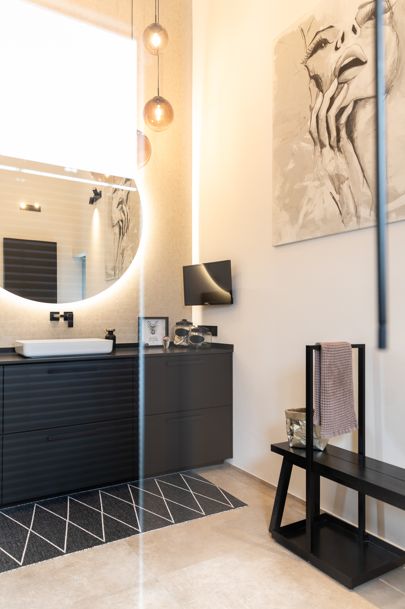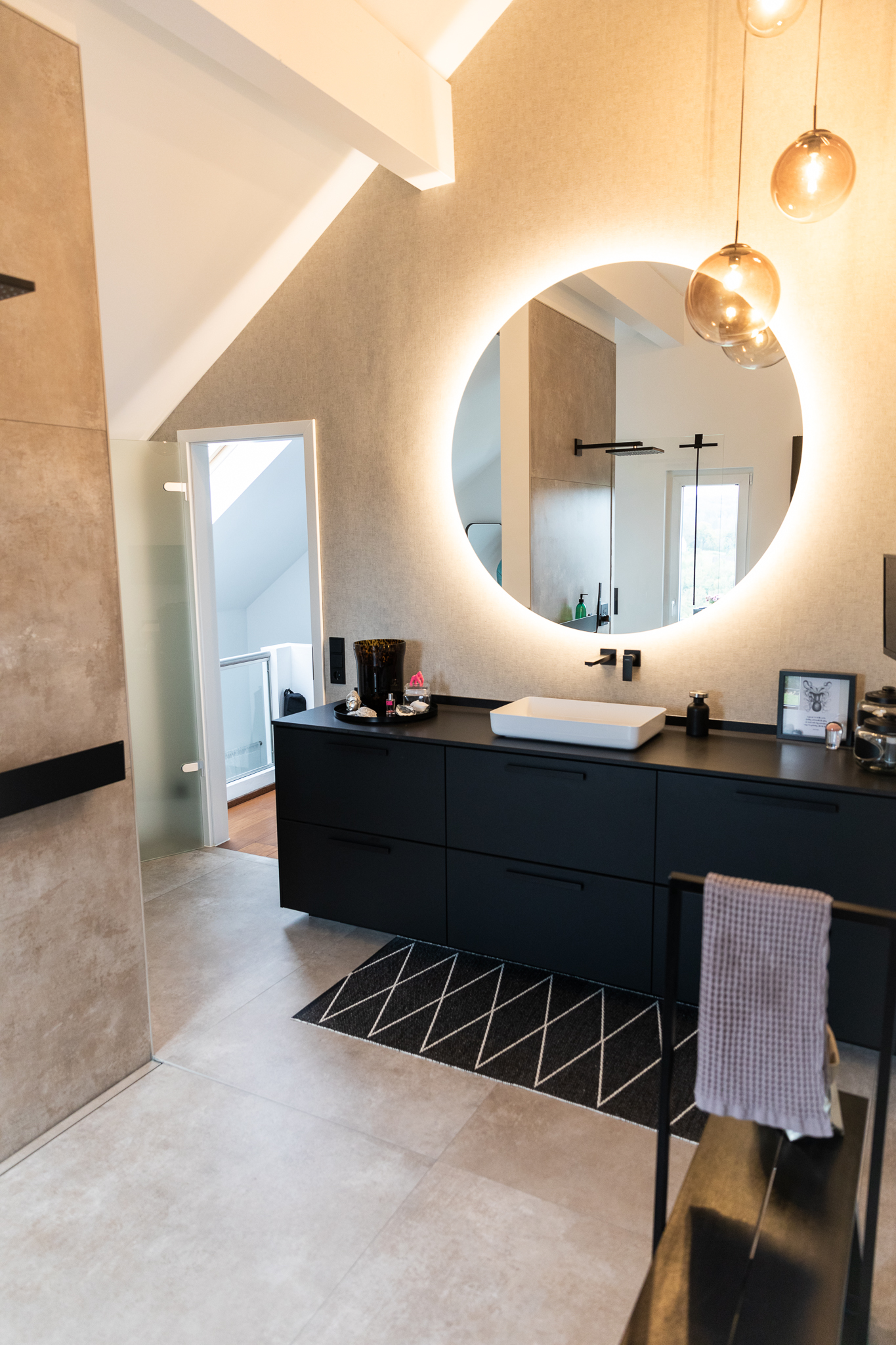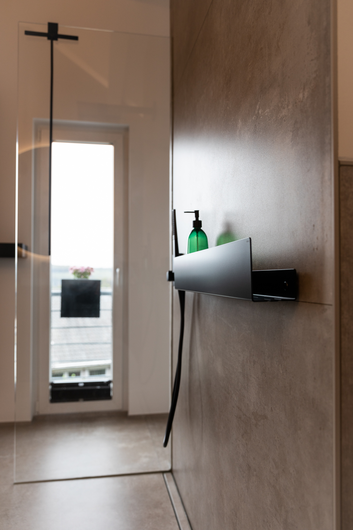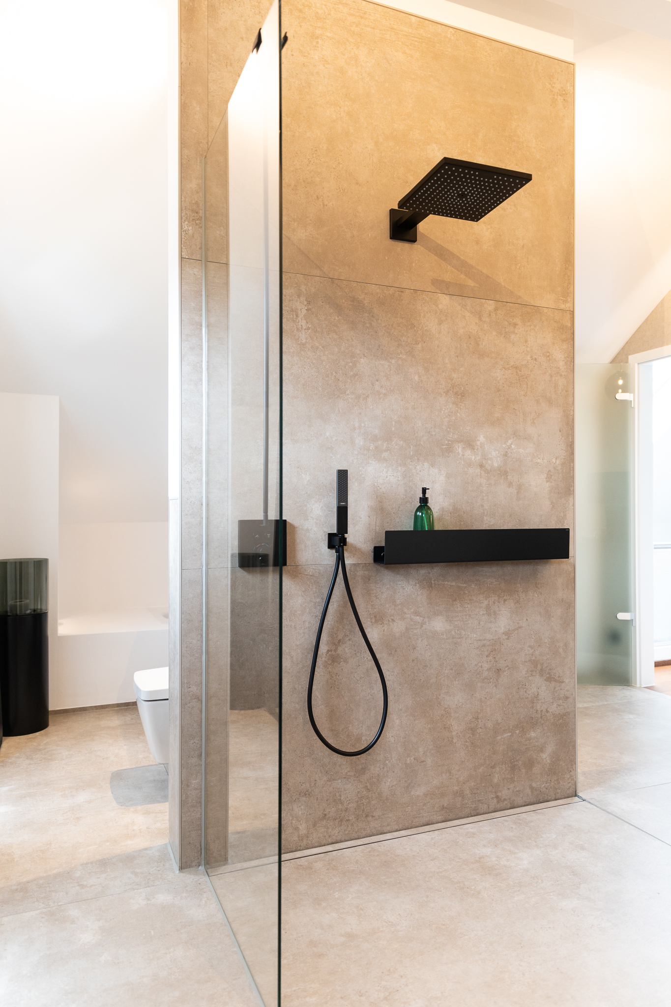 Eckdaten:Aus zwei mach Eins – Umbau eines Ankleidezimmers und ehemaligem Bad zu einer einzigartigen, modernen Wohlfühloase. Verarbeitet wurden hochwertige italienische Fliesen im Großformat, welche dem Bad den letzten Schliff verleihen. Endergebnis