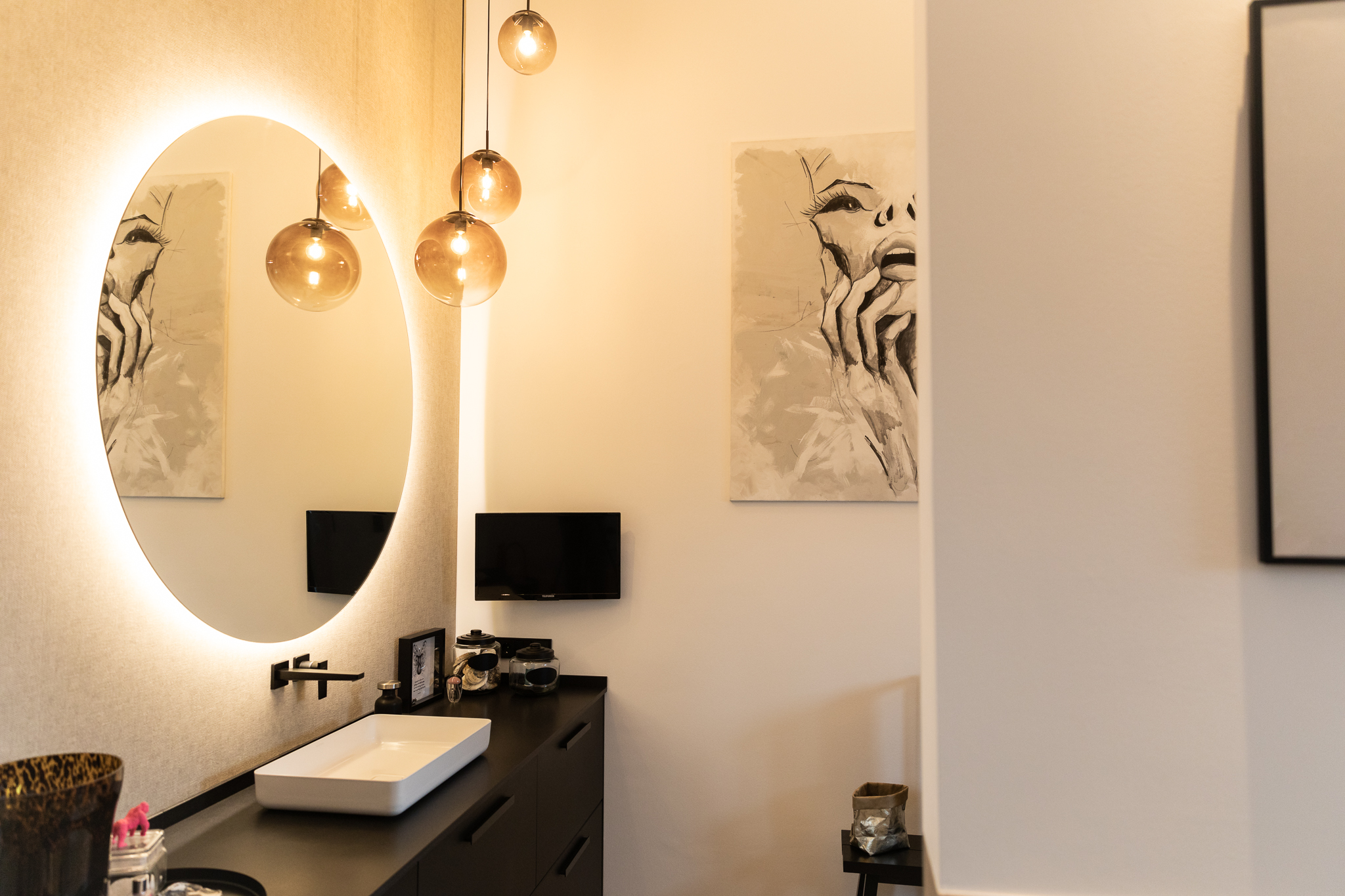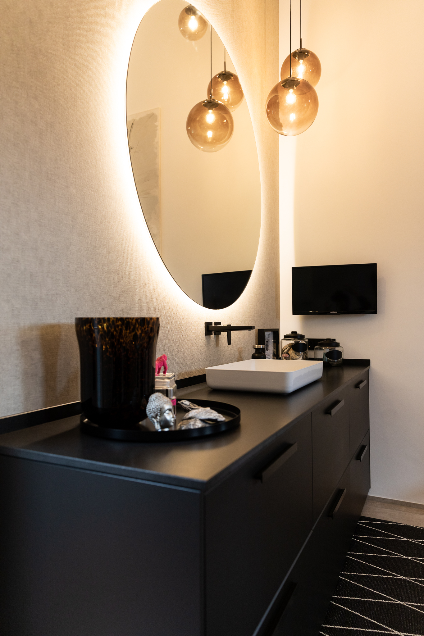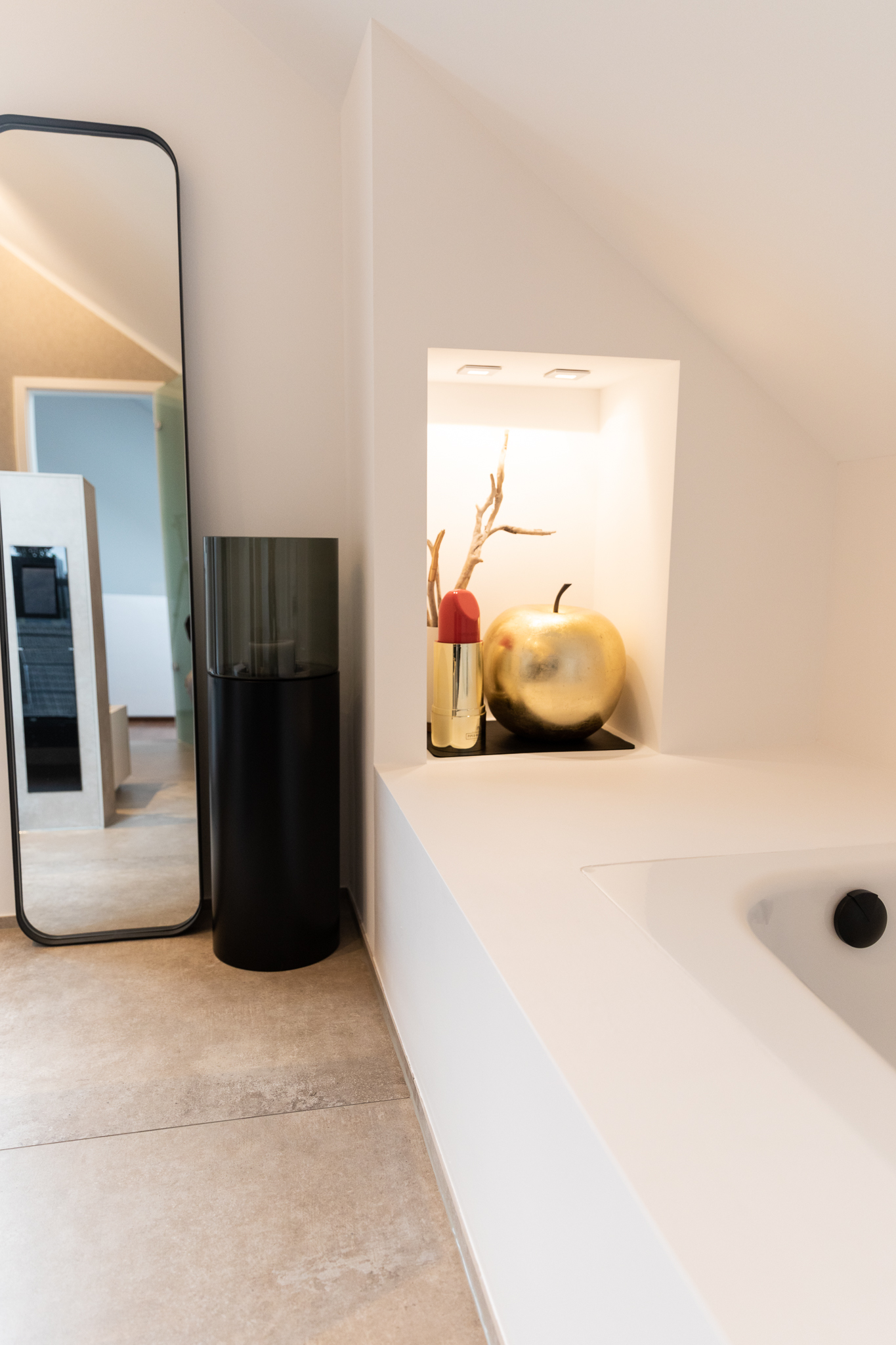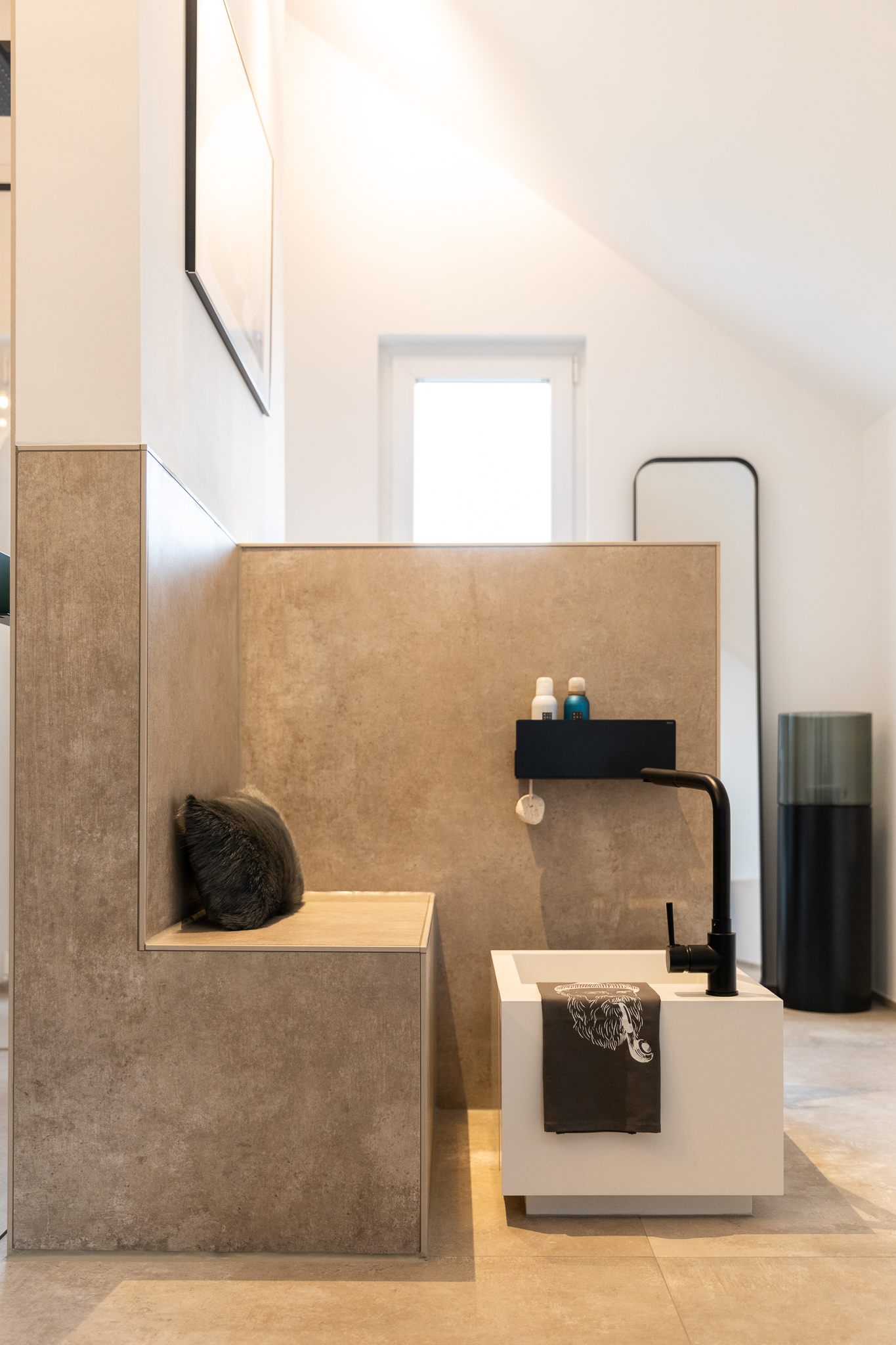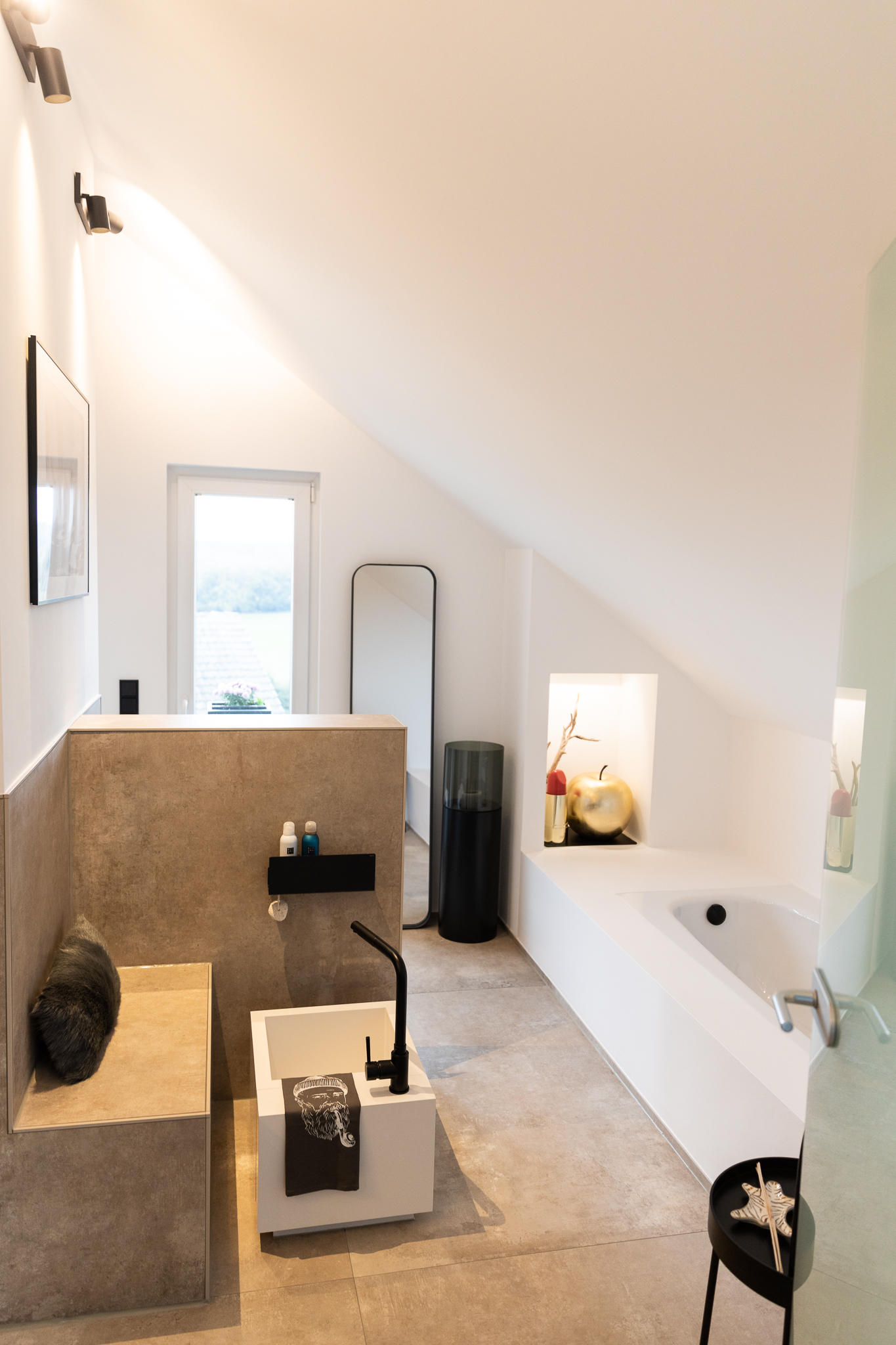Eckdaten:Aus zwei mach Eins – Umbau eines Ankleidezimmers und ehemaligem Bad zu einer einzigartigen, modernen Wohlfühloase. Verarbeitet wurden hochwertige italienische Fliesen im Großformat, welche dem Bad den letzten Schliff verleihen. Endergebnis