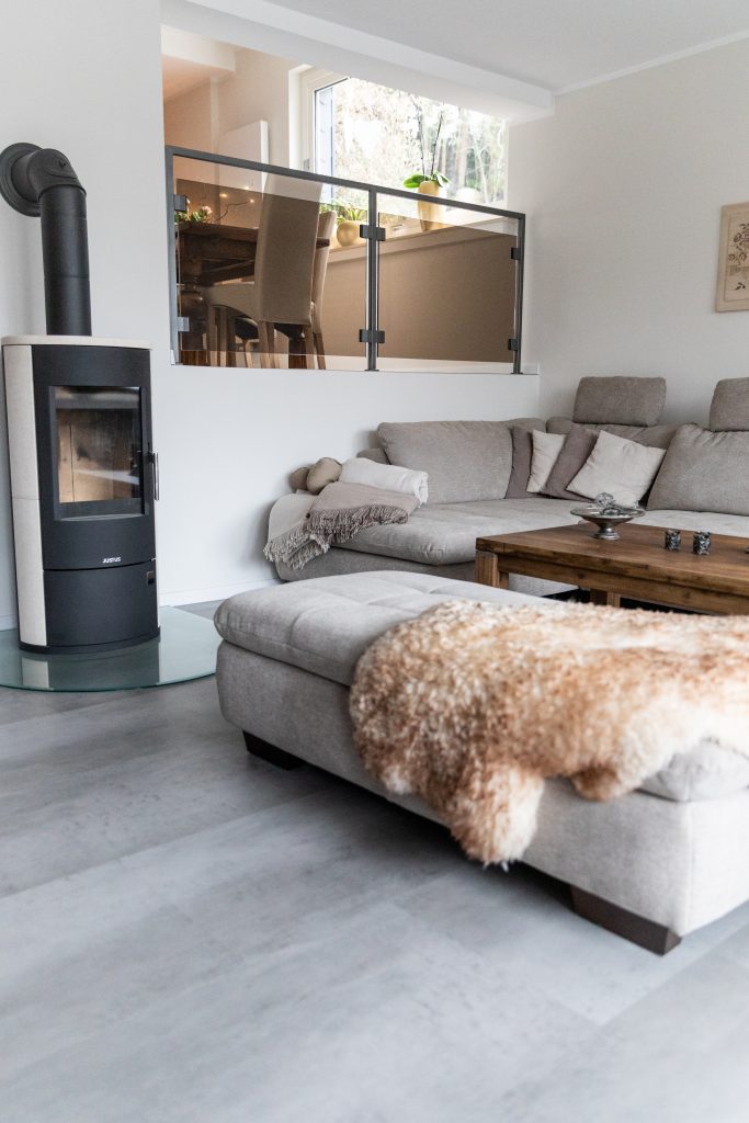 Durch eine stilvolle Änderung des Grundrisses wurde Platz für einen gemütlichen Wohn – Essbereich mit Fußbodenheizung von der Firma Lofec geschaffen. Mehr details dazu hier.